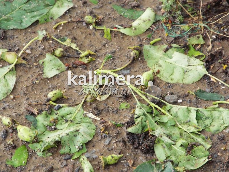 Απελπισμένοι οι αγρότες της περιοχής, είδαν -μέσα σε λίγα λεπτά- να καταστρέφονται οι κόποι μιας χρονιάς.