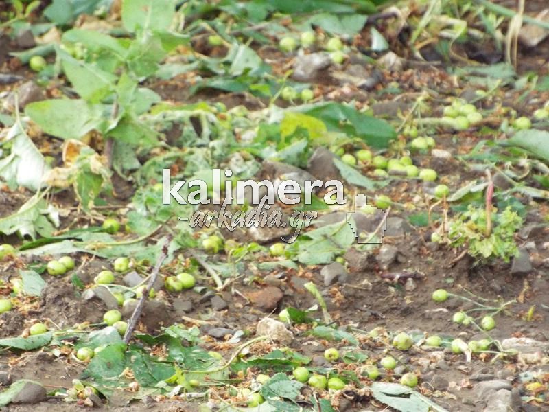 Μεγάλη καταστροφή -από το χαλάζι και την έντονη βροχόπτωση- προκλήθηκε στον κάμπο της Τεγέας.
