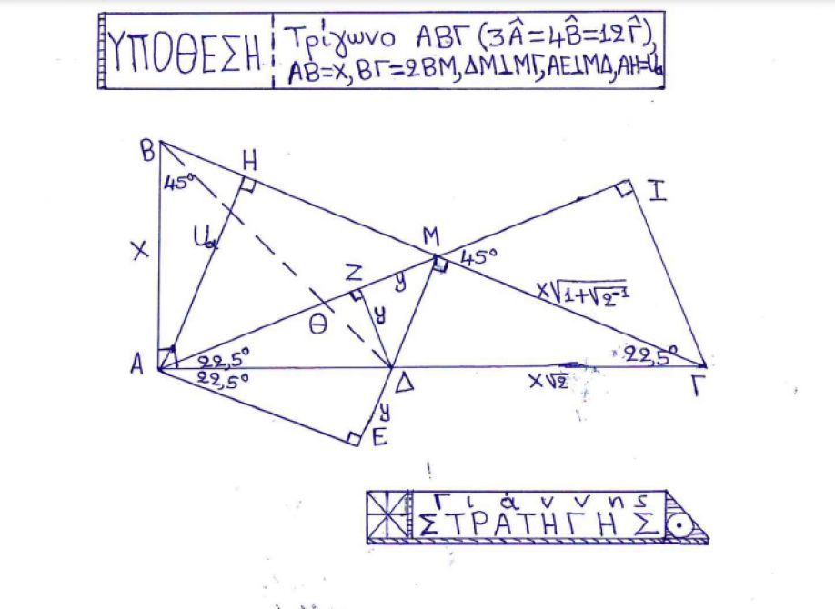 Μαθηματική δράση επιστεγάσματος, 1ου ΓΕ.Λ. Τρίπολης, του Γιάννη Στρατήγη (ειδικού συγγραφέα 35ετίας)