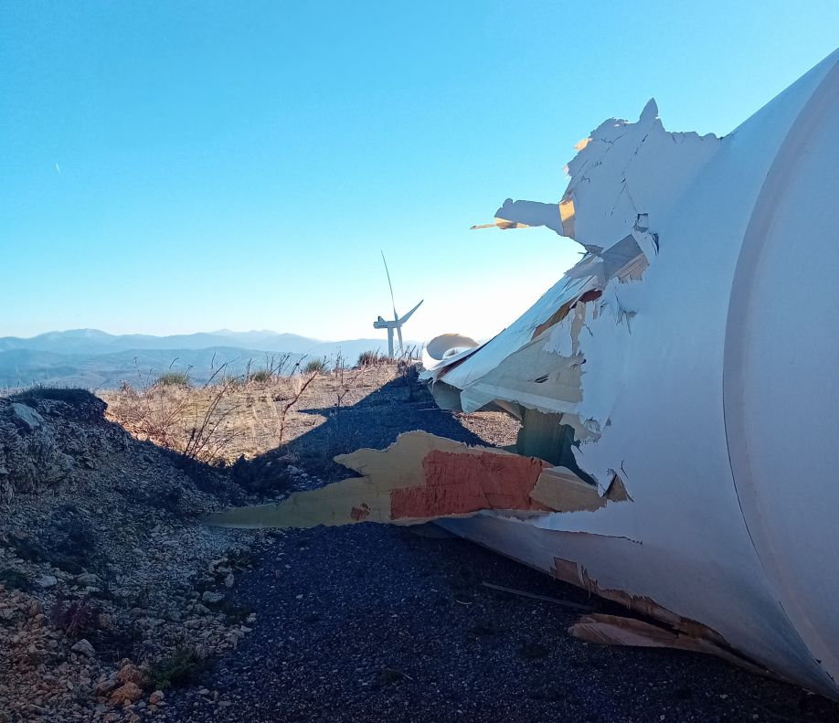 Απολογούμαι για την καθυστερημένη αντίδραση, αλλά πριν λίγες ημέρες, πήγα στην περιοχή και διαπίστωσα ότι το πτερύγιο, έξη μήνες μετά, παραμένει στο χώρο. Μια μικρή επιτόπια έρευνα, αποκάλυψε διασπορά μεγάλης ποσότητας θραυσμάτων και υλικών κατασκευής του κατεστραμμένου πτερυγίου ή άλλων οργάνων που έχουν απορριφθεί στον περιβάλλοντα χώρο και σε απόσταση έως 100-150 μέτρων από την κύρια εγκατάσταση της ανεμογεννήτριας. Ένιωσα οργή και θυμό. Με κατέκλυσαν ερωτήματα: