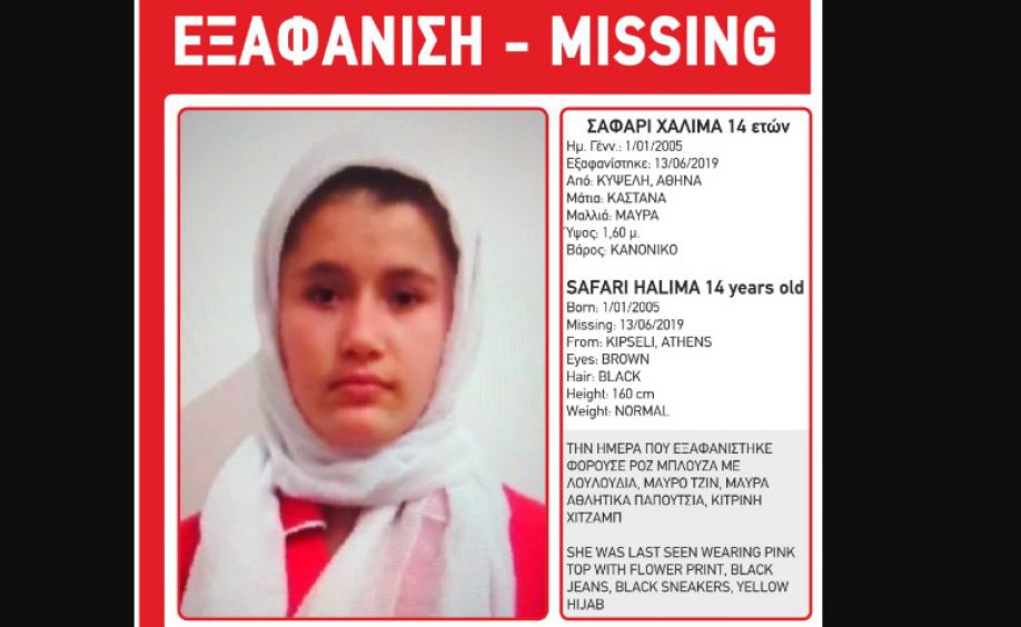 Στις 13/6/2019, στις 18:00, εξαφανίστηκε από το σπίτι της στην Κυψέλη, η Χαλιμά (ον.) Σαφάρι (επ.), 14 ετών, αφγανικής καταγωγής. Η Χαλιμά Σαφάρι έχει ύψος 1,60 μ., κανονικό βάρος, μαύρα μαλλιά και καστανά μάτια. Την ημέρα που εξαφανίστηκε φορούσε ροζ μπλούζα με λουλούδια, μαύρο τζιν, μαύρα αθλητικά παπούτσια και κίτρινη Χιτζάμπ.