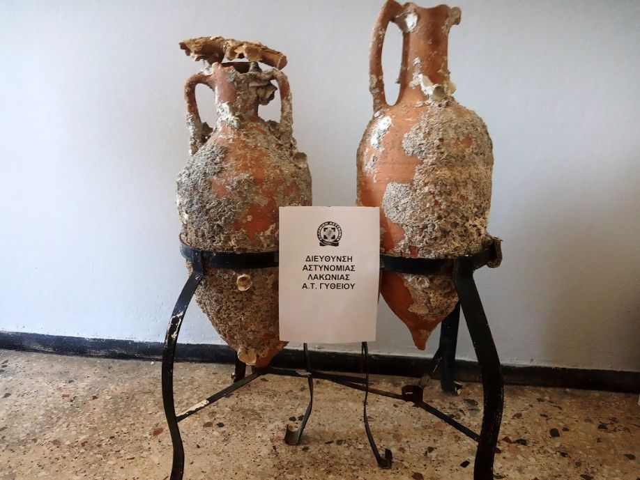 Ειδικότερα, σήμερα (2.7.2019) το μεσημέρι, σε τοπική κοινότητα του Δήμου Ανατολικής Μάνης Λακωνίας, ανωτέρω αστυνομικοί, πραγματοποίησαν έρευνα στην οικία του 67χρονου, όπου βρήκαν και κατέσχεσαν δύο (2) οξυπύθμενους αμφορείς προ Ελληνιστικών-Ρωμαϊκών χρόνων.