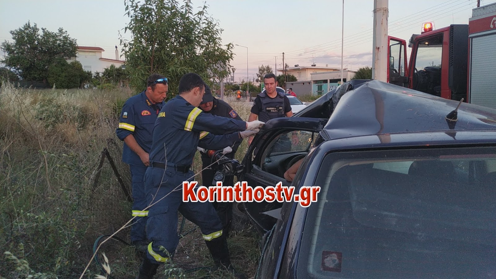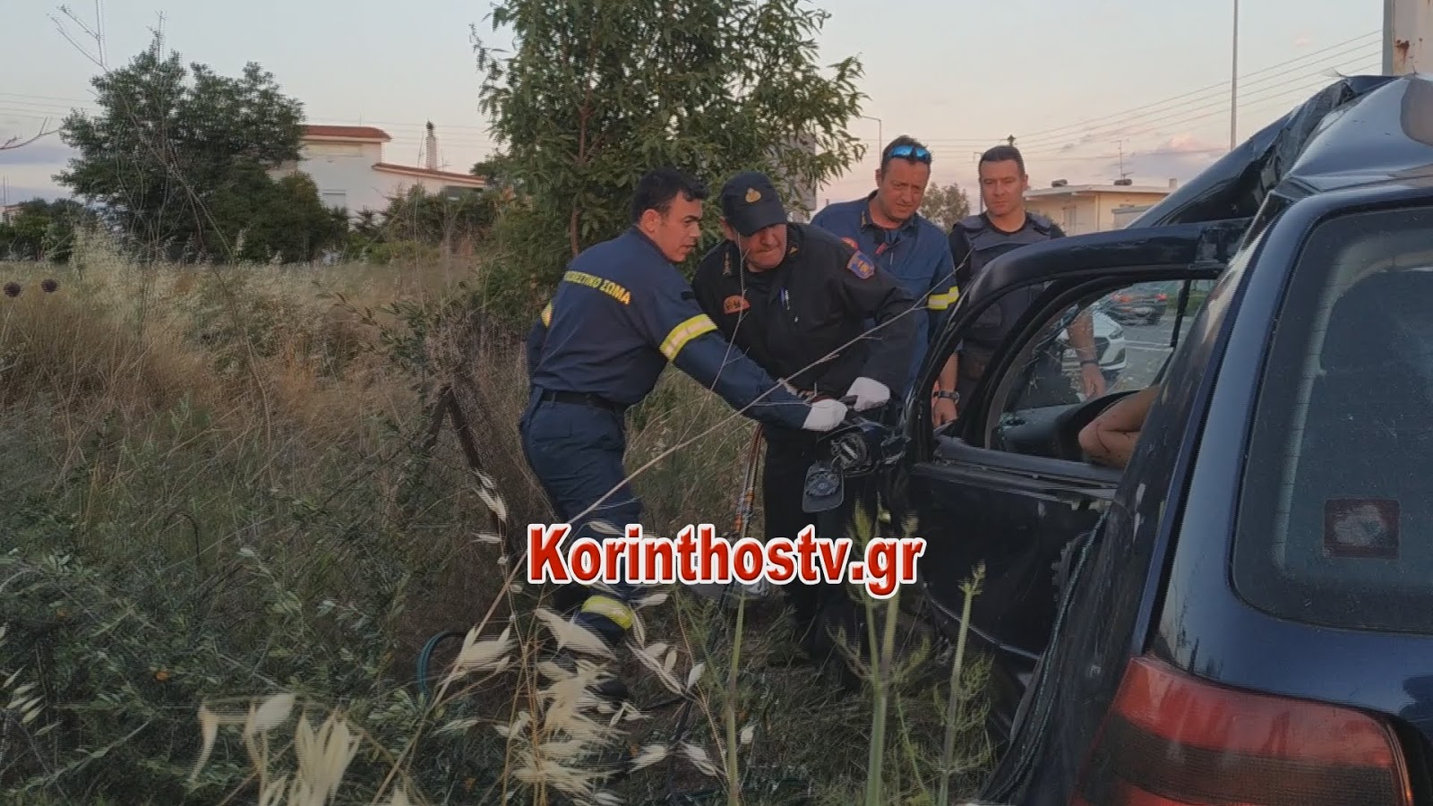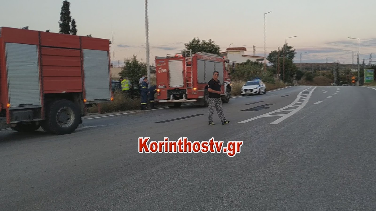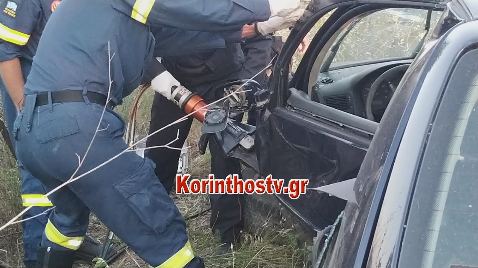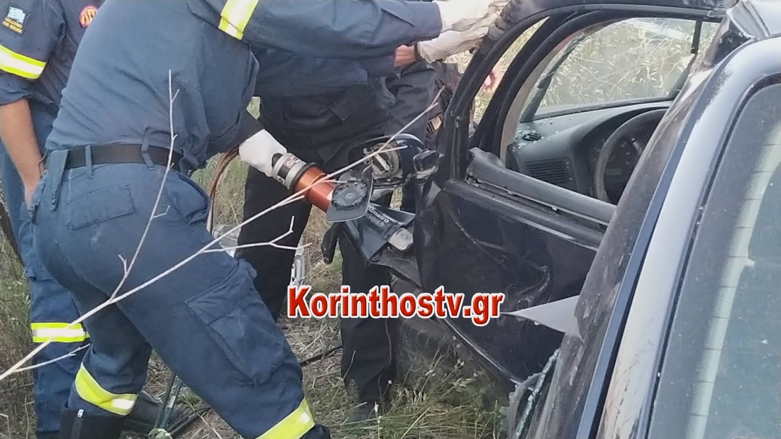 Ο οδηγός εγκλωβίστηκε και για τον απεγκλωβισμό του χρειάστηκε η συνδρομή της Πυροσβεστικής Υπηρεσίας Κορίνθου.