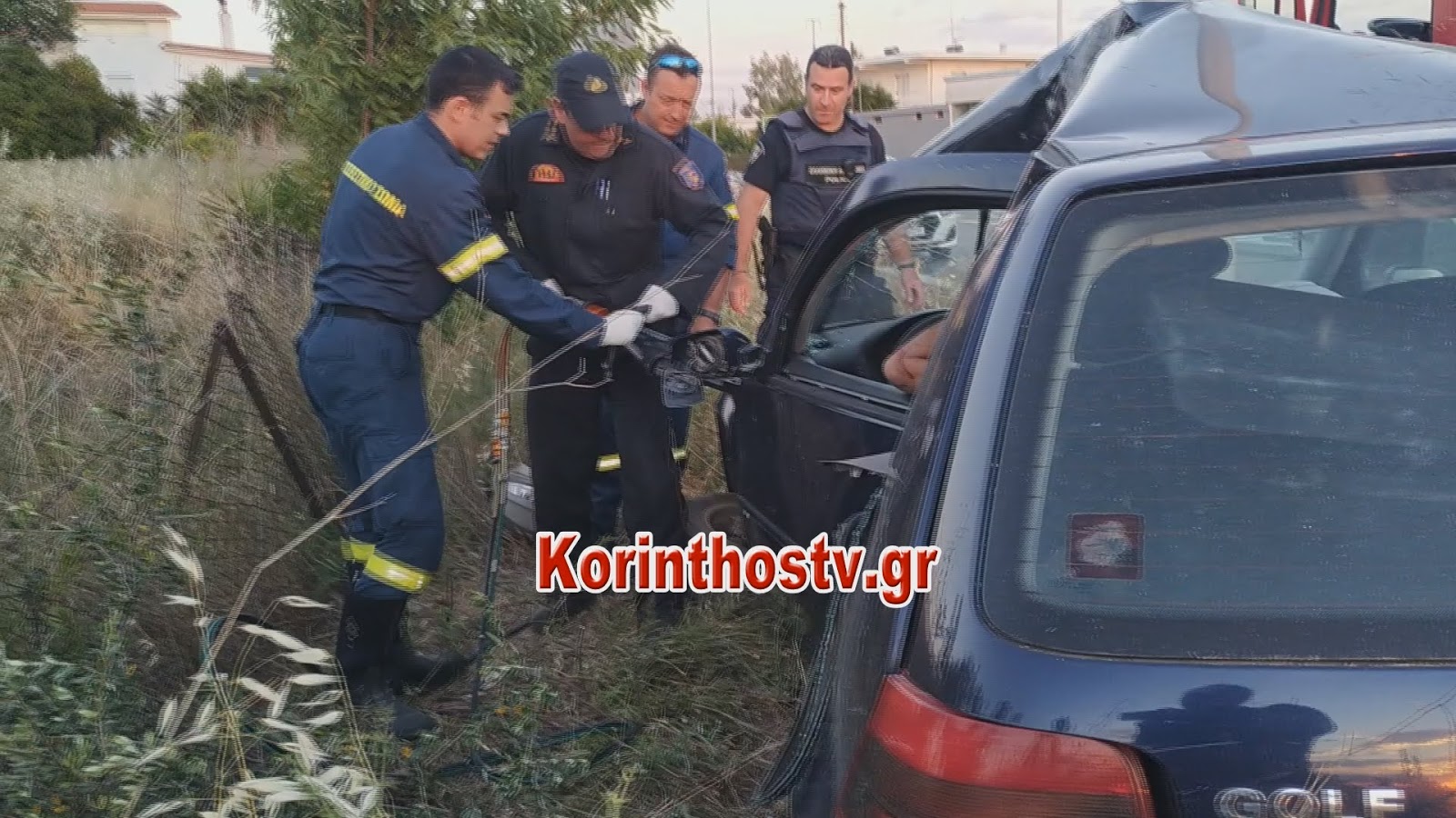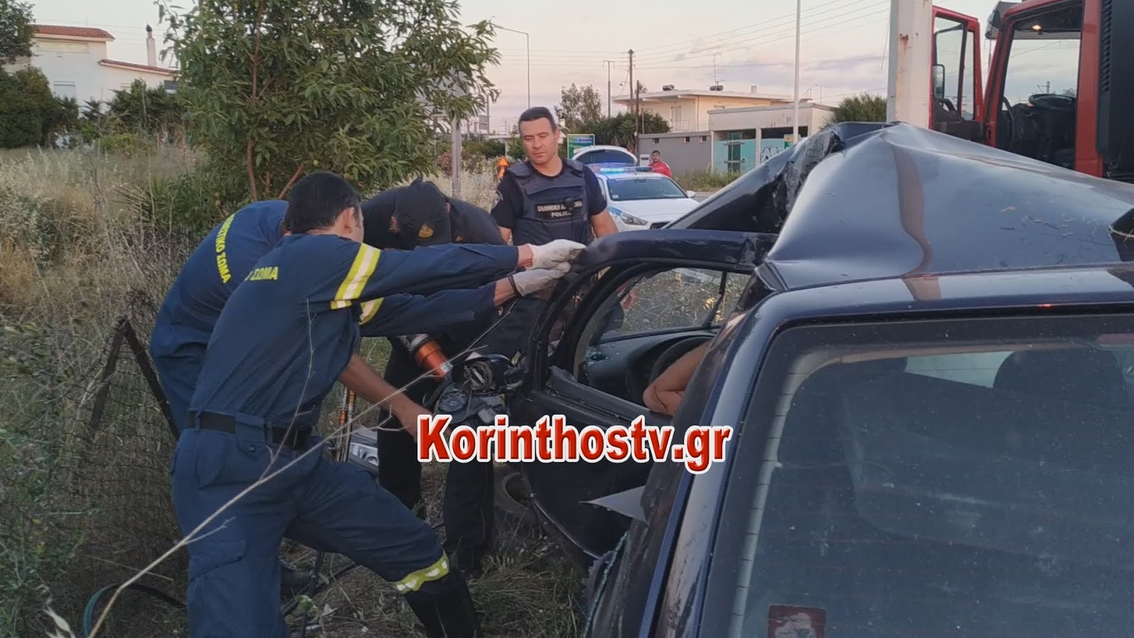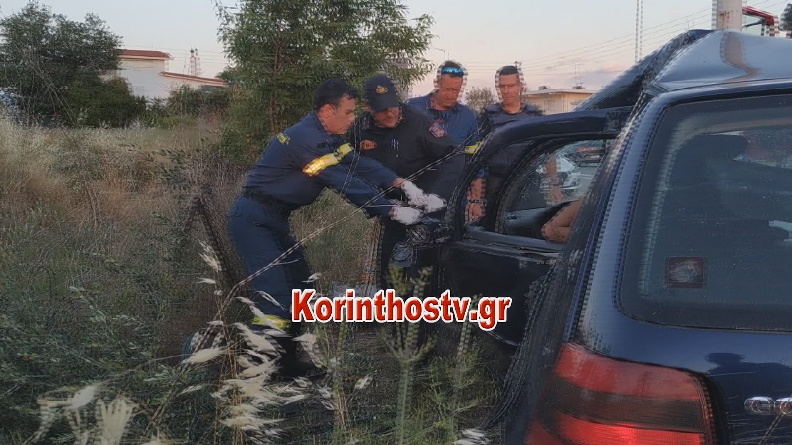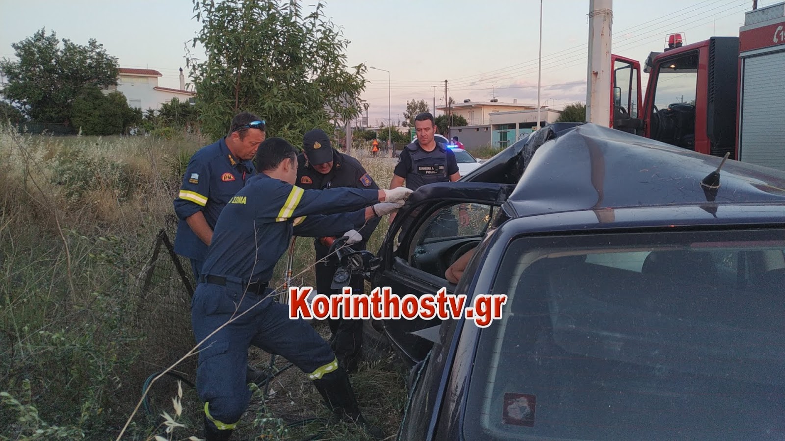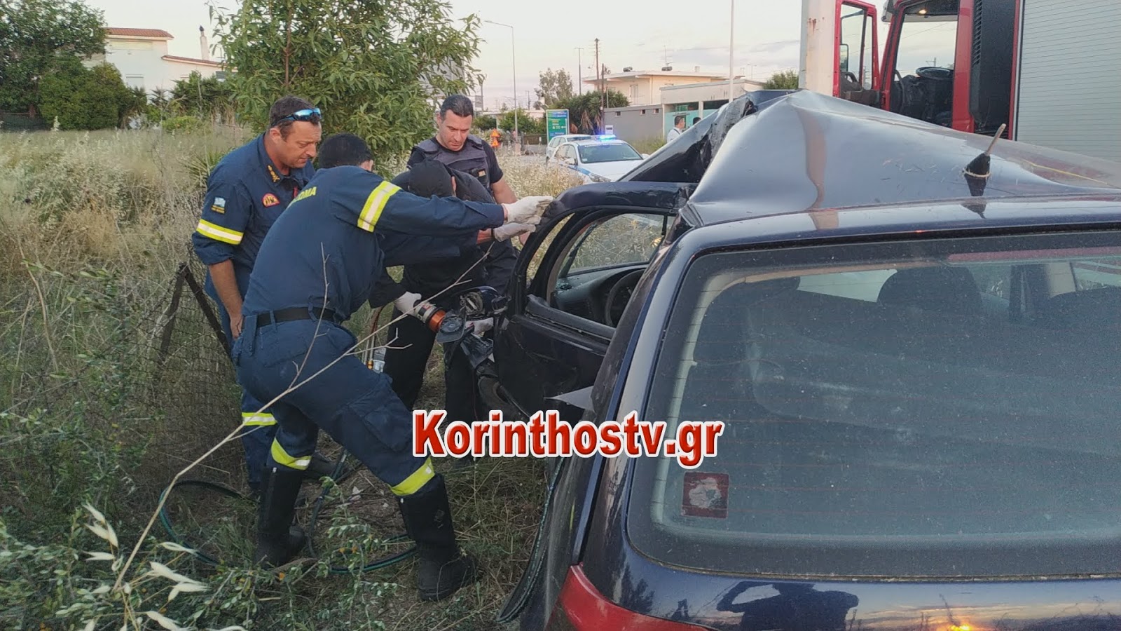 Ο οδηγός εγκλωβίστηκε και για τον απεγκλωβισμό του χρειάστηκε η συνδρομή της Πυροσβεστικής Υπηρεσίας Κορίνθου.
