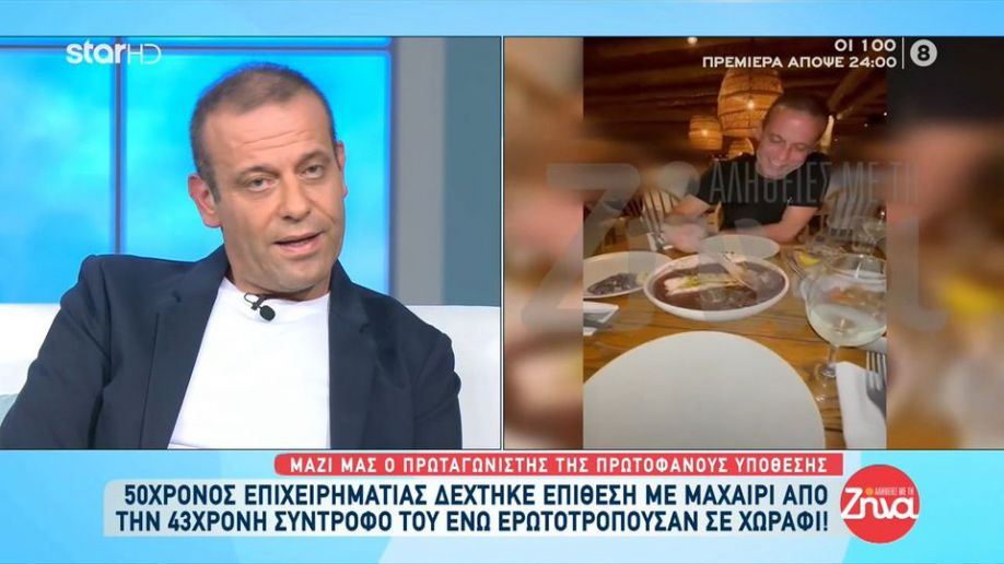 Ένα απίστευτο περιστατικό που βίωσε ο ίδιος περιέγραψε στην εκπομπή “Αλήθειες με τη Ζήνα” ένας 50χρονος επιχειρηματίας από τη Σπάρτη, ο οποίος κατήγγειλε την σύντροφό του για επίθεση με μαχαίρι κατά τη διάρκεια σεξουαλικής πράξης.