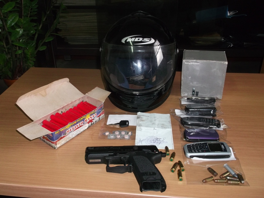 Κατά τις αστυνομικές έρευνες βρέθηκαν και κατασχέθηκαν, ένα (1) πιστόλι, δεκαέξι (16) φυσίγγια, επτά (7) ναρκωτικά δισκία, τριάντα (30) κροτίδες, πέντε (5) κινητά τηλέφωνα και μία μοτοσικλέτα, ενώ σχηματίστηκε δικογραφία αυτόφωρης διαδικασίας σε βάρος μιας 40χρονης ημεδαπής, γιατί γνώριζε την ύπαρξη του όπλου.