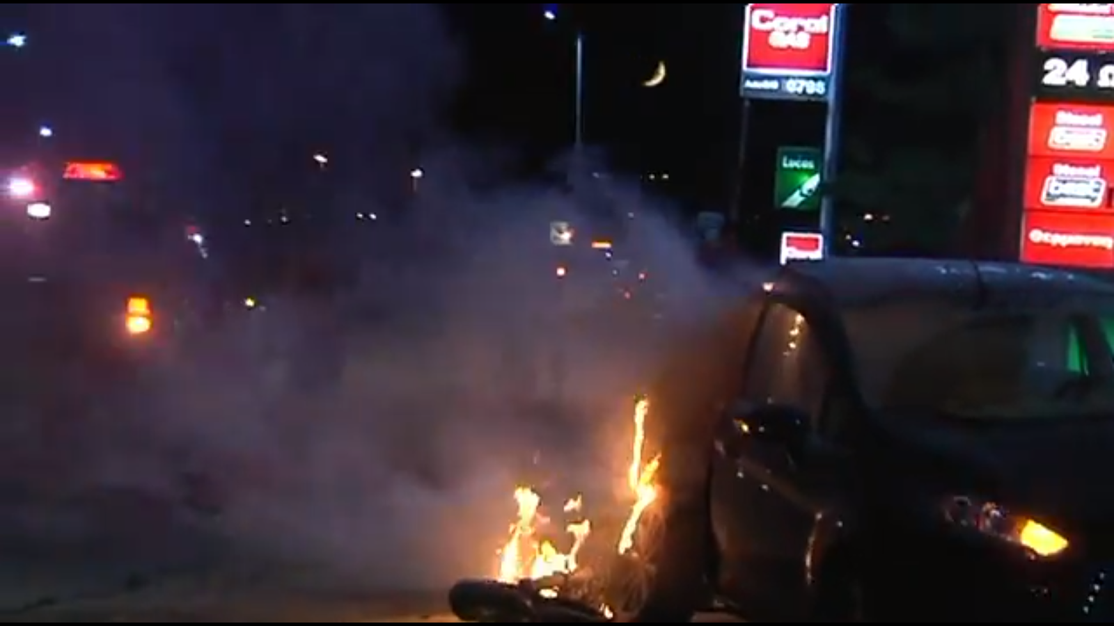 ΙΧ αυτοκίνητο και μηχανή τυλίχθηκαν στις φλόγες στην παλαιά εθνική Αθηνών - Κορίνθου (vd)
