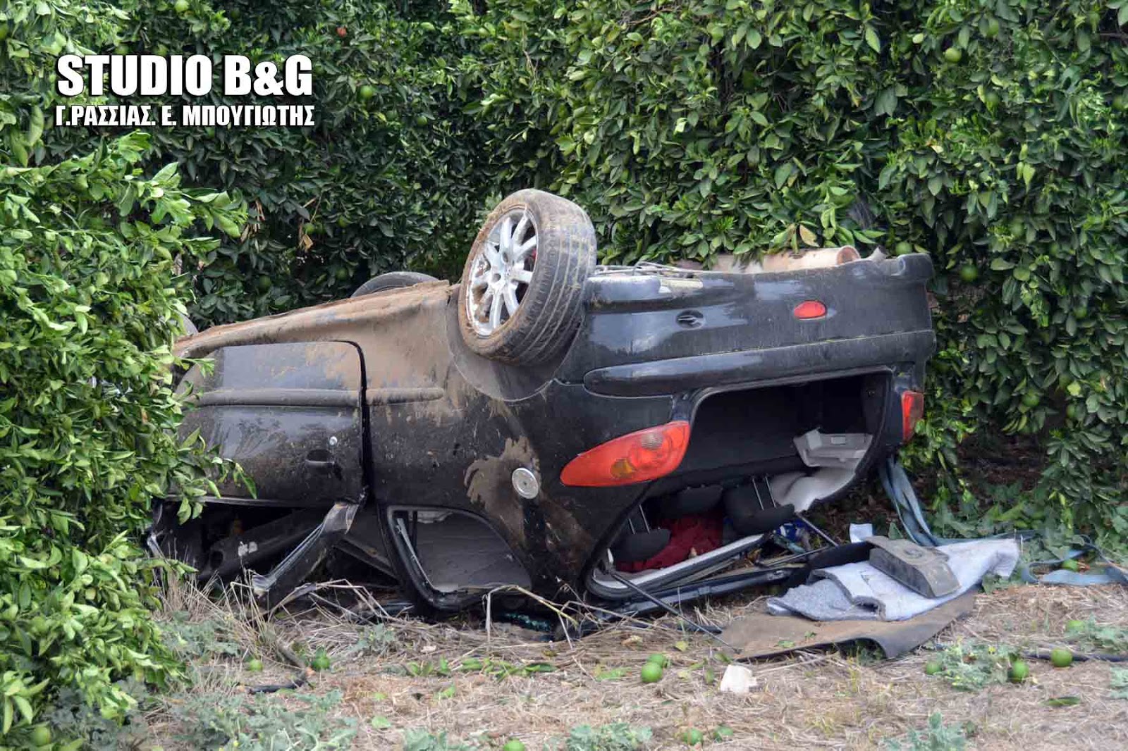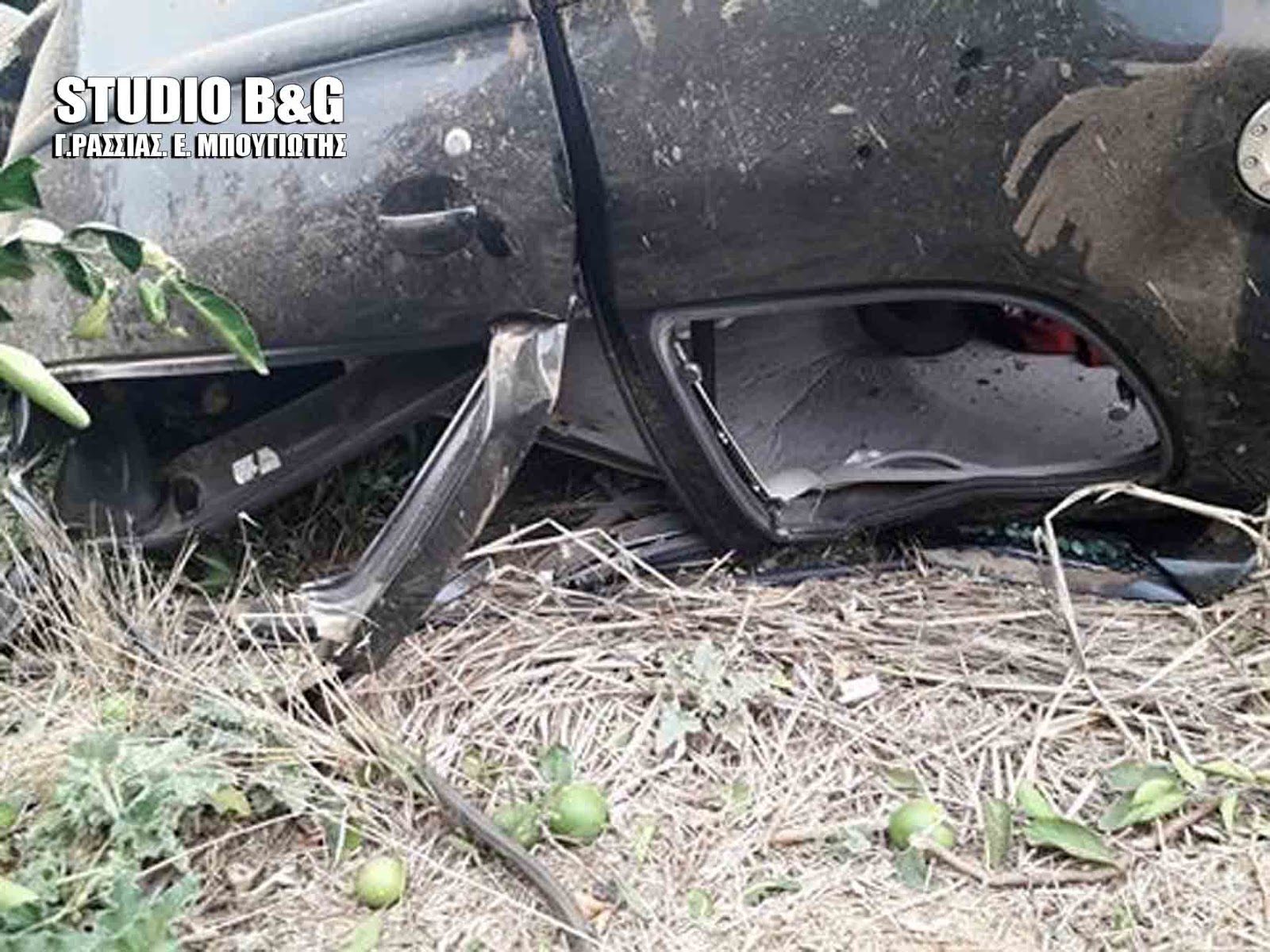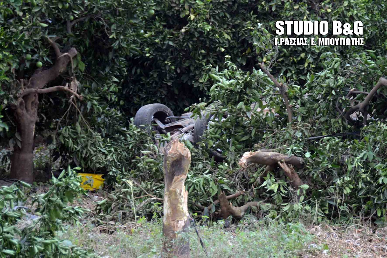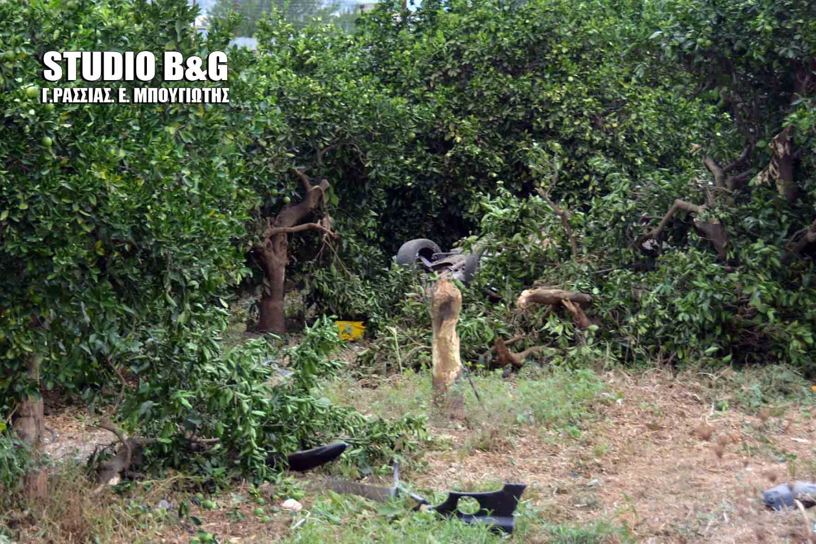 Αυτοκίνητο εξετράπη της πορείας του και έκοψε δέντρα στο Άργος (vd)