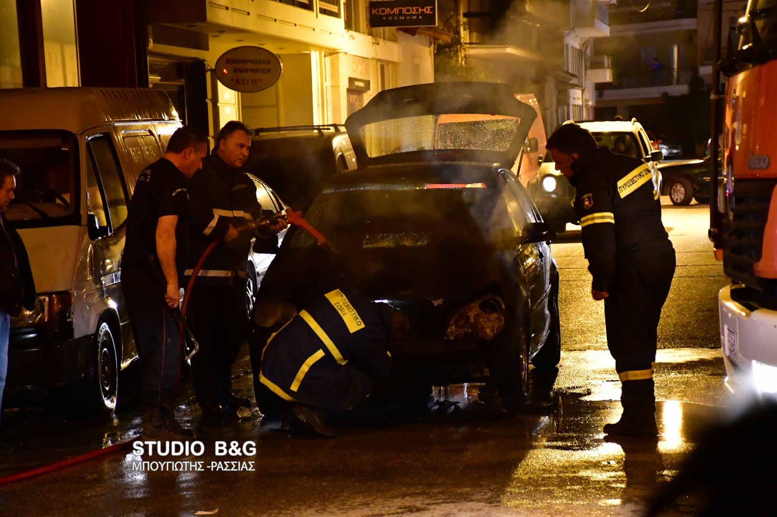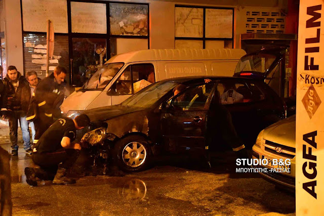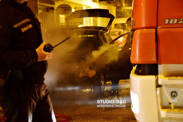 Φωτιά εκδηλώθηκε σε ενα ΙΧ αυτοκίνητο ενώ βρισκόταν εν κινήσει στο κέντρο της πόλης του Ναυπλίου το βράδυ της Παρασκευής 9 Μαρτίου 2018.