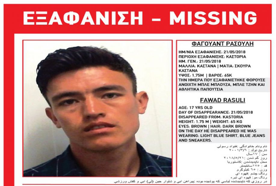 Στις 21/05/2018, στις 08:00 το πρωί, εξαφανίστηκε από τη Δομή Φιλοξενίας Ασυνόδευτων Ανηλίκων Προσφύγων στην Καστοριά, Ξενοδοχείο «ΔΕΔΗΣ», ο Φαγουάντ (ον.) Ρασούλη (επ.), 17 ετών, αφγανικής καταγωγής. Για την εν λόγω εξαφάνιση, η δήλωση στις αστυνομικές αρχές πραγματοποιήθηκε από τους αρμόδιους της δομής φιλοξενίας σήμερα 23/05/2018. Οι αστυνομικές αρχές ενημέρωσαν άμεσα το Σύλλογο «Το Χαμόγελο του Παιδιού», προκειμένου να προβούμε στη δημοσιοποίηση των στοιχείων του.