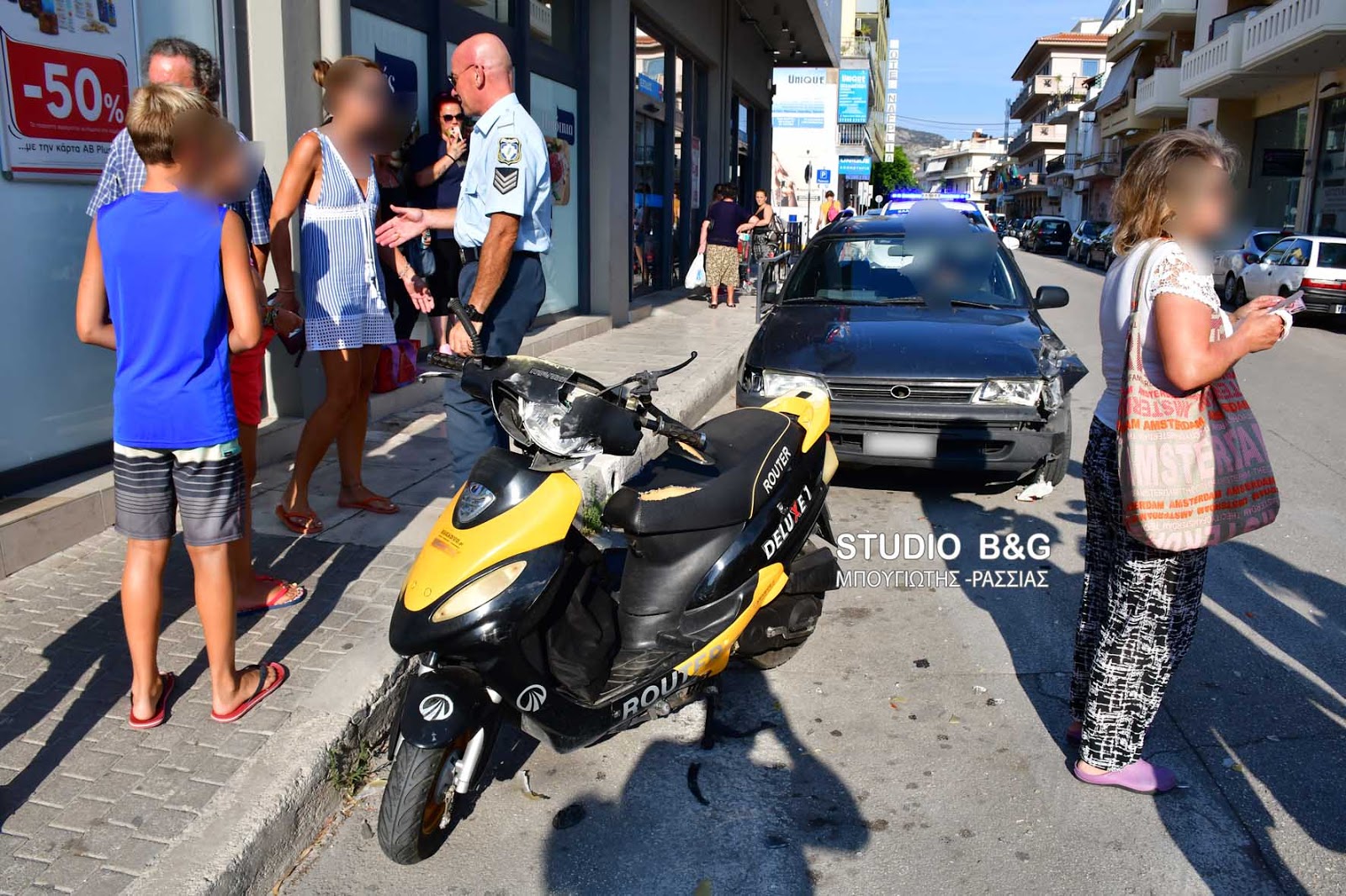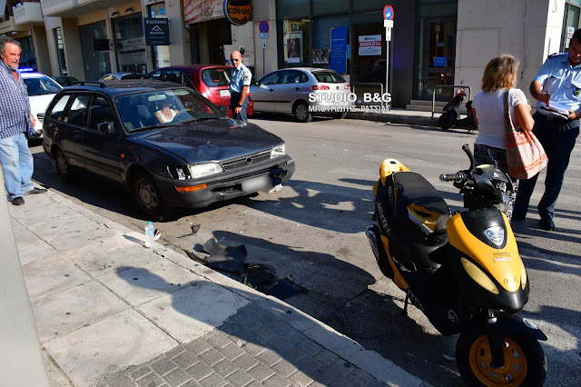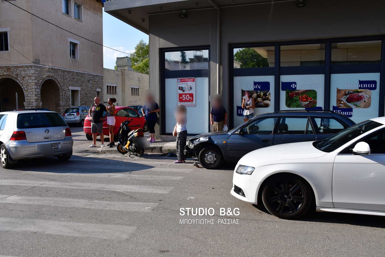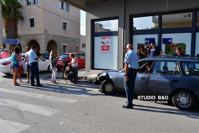 Τροχαίο ατύχημα σημειώθηκε το απόγευμα του Σαββάτου στην διασταύρωση Μπουμπουλίνας και Θεσσαλονίκης μπροστά από το κτίριο της ΔΕΗ στο κέντρο του Ναυπλίου.