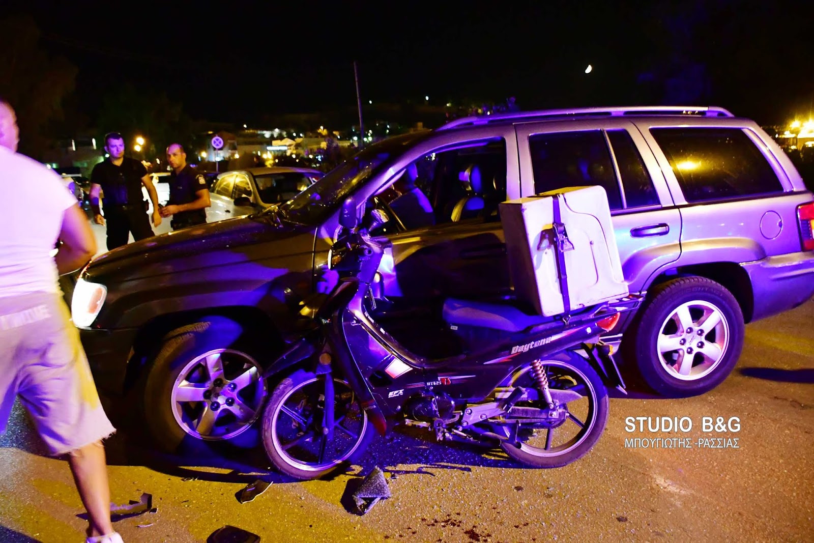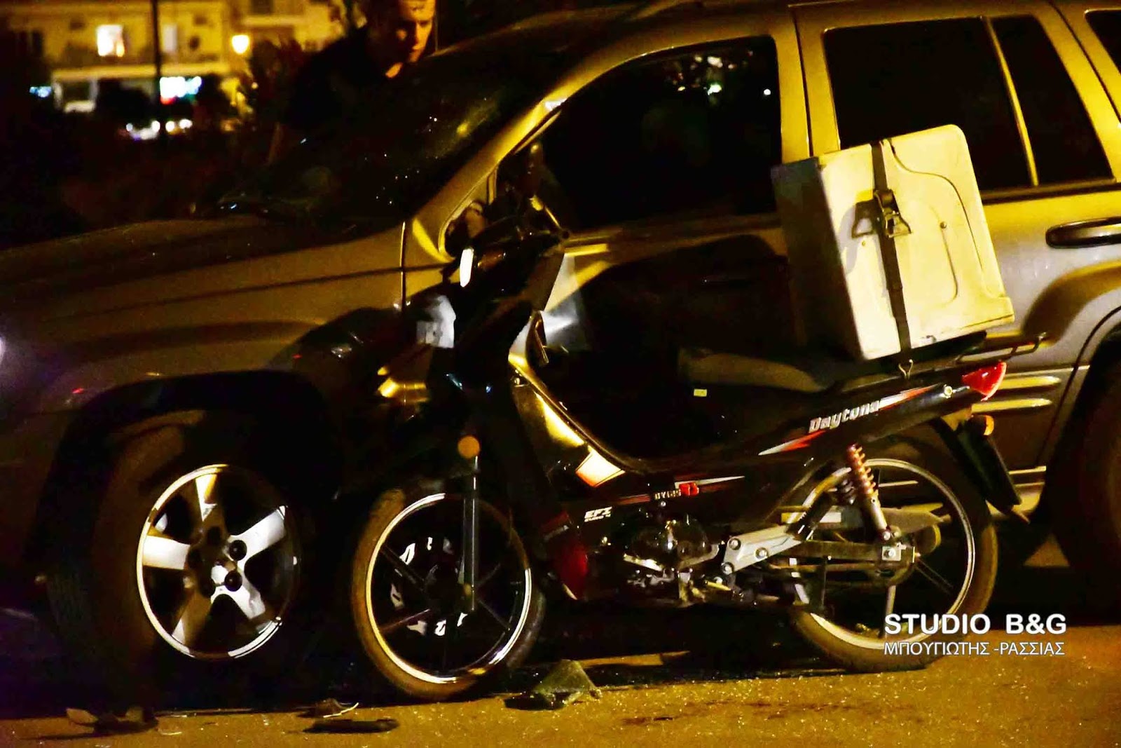 Τροχαίο ατύχημα σημειώθηκε το βράδυ της Παρασκευής 17 Αυγούστου στο Ναύπλιο όταν συγκρούστηκε ΙΧ αυτοκίνητο με δίκυκλο μηχανάκι delivery.