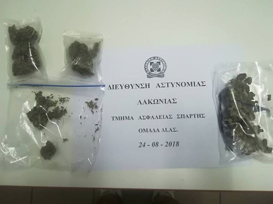 Συνελήφθησαν, χθες (24.8.2018) το μεσημέρι, στη Σπάρτη, από αστυνομικούς της Ομάδας Δίκυκλης Αστυνόμευσης (ΔΙ.ΑΣ.) Λακωνίας, τρεις αλλοδαποί, 29χρονος, 28χρονος και 28χρονη, αντίστοιχα, γιατί σε έρευνα που έγινε σε όχημα στο οποίο επέβαιναν, βρέθηκαν και κατασχέθηκαν ποσότητες κάνναβης, συνολικού βάρους -19,78- γραμμαρίων.