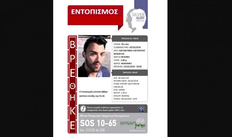 Η ΓΡΑΜΜΗ ΖΩΗΣ, μετά από αίτημα των συγγενών, με τη συγκέντρωση των απαραίτητων δικαιολογητικών και κατόπιν εντολής της ΕΛ.ΑΣ. ενεργοποίησε το SILVER ALERT, το βράδυ της 29/10/2018, για την κινητοποίηση όλων για την ανεύρεσή του.