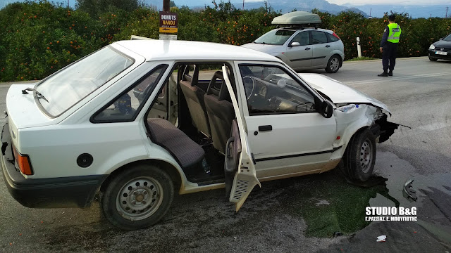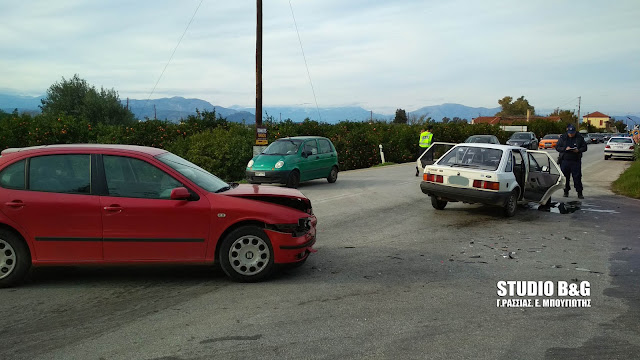 Σφοδρή σύγκρουση δυο ΙΧ αυτοκινήτων σημειώθηκε το μεσημέρι του Σαββάτου 1 Δεκεμβρίου στην διασταύρωση Τσεκρέκου έξω από τον αρχαιολογικό χώρο της Τίρυνθας στην επαρχιακή οδό Ναυπλίου-Άργους στην Αργολίδα.