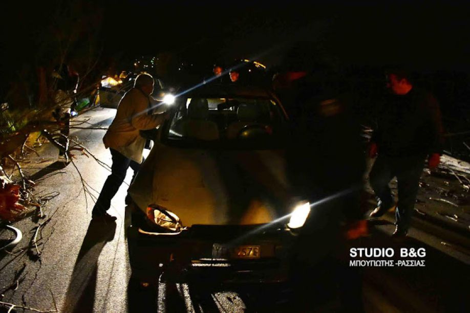 Διερχόμενο όχημα που εκείνη την ώρα πήγαινε προς Επίδαυρο, στο οποίο επέβαινε ο οδηγός μαζί με την κόρη του έκπληκτοι είδαν το τεράστιο δέντρο να πέφτει ακριβώς μπροστά τους και μόλις που πρόλαβαν να σταματήσουν, ενώ προκλήθηκαν σοβαρές ζημιές στο όχημα
