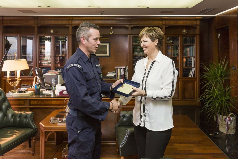 Τον Ειδικό Φρουρό Νικόλαο Γκάρα, ο οποίος διέσωσε ανήλικο, μετά από τροχαίο ατύχημα στην περιοχή της Κορίνθου, συνεχάρησαν προσωπικά χθες (31η Ιανουαρίου 2019) η Υπουργός Προστασίας του Πολίτη Όλγα Γεροβασίλη και ο Αρχηγός της Ελληνικής Αστυνομίας, Αντιστράτηγος Αριστείδης Ανδρικόπουλος.
