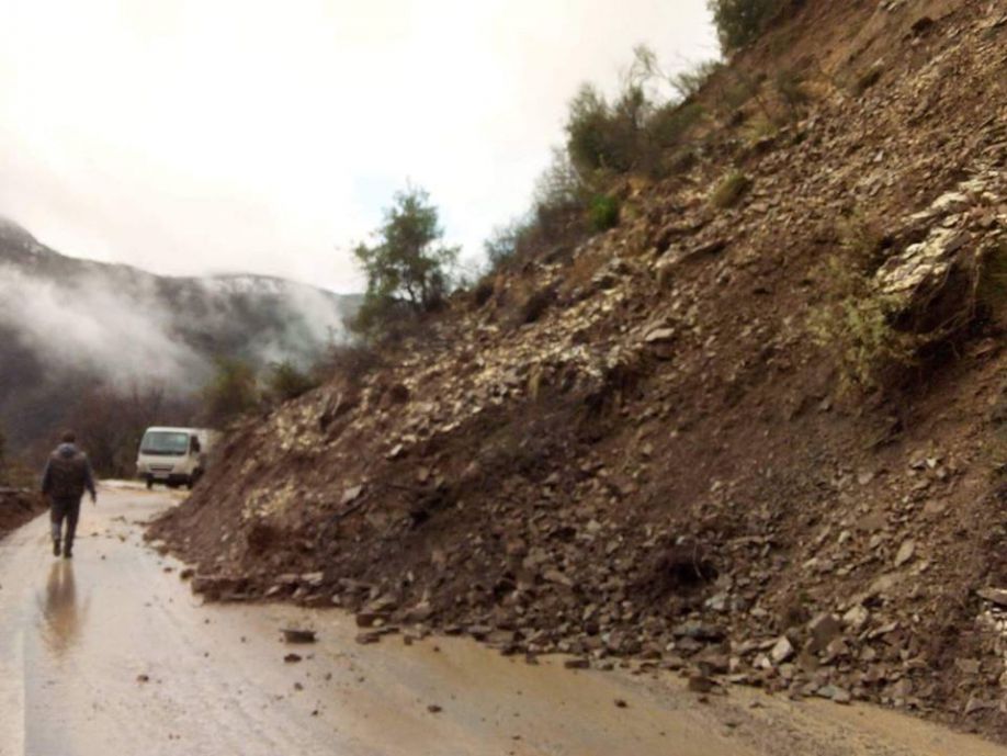 Επ. Ο. Αλφειούσας προς Μακρίσσια, θέση «Λίμνες», λόγω πτώσης βράχων & χωμάτινων όγκων.