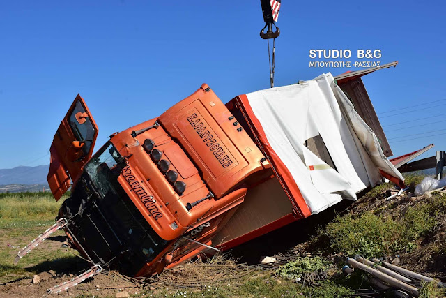 Ανατροπή νταλίκας στην Αργολίδα (εικόνες)