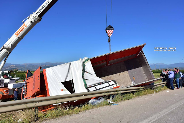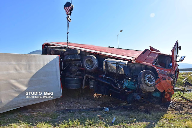 Αργά τα ξημερώματα της Πέμπτης 16 Μαΐου σημειώθηκε τροχαίο ατύχημα με εκτροπή νταλίκας στην Νέα Εθνική οδό Ναυπλίου - Μυκηνών στο ύψος της διασταύρωσης για Νέο Ηραίο του Δημου Άργους Μυκηνών στην Αργολίδα.