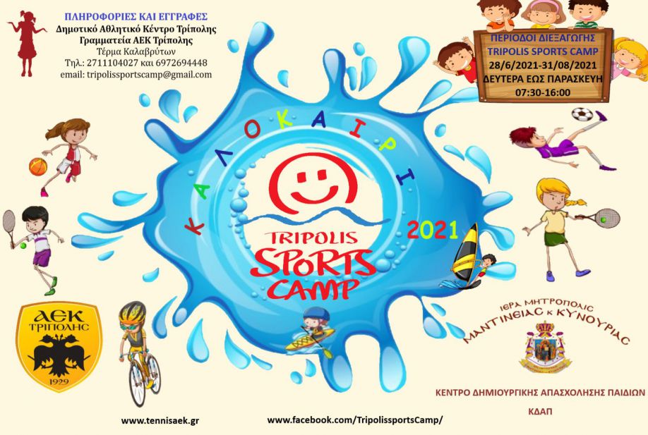 Στο πρότυπο camp της Τρίπολης τα παιδιά ηλικίας 5-14 ετών θα βρεθούν στην αγκαλιά του συλλόγου μας και στην καρδιά του, στις εγκαταστάσεις τόσο του Δημοτικού Αθλητικού Κέντρου της πόλης όσο και σε αυτές του ΚΔΑΠ της Ιεράς Μητρόπολης Μαντινείας και Κυνουρίας στην Κάρτσοβα. Σε εμάς θα διδαχθούν 12 διαφορετικά αθλήματα αλλά το πρόγραμμα δεν θα σταματήσει εκεί, αφού πολλές εκπλήξεις περιμένουν τους μικρούς μας φίλους.