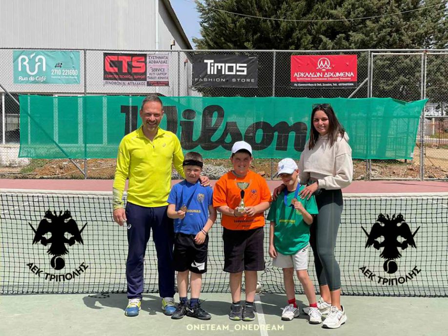 Σε αγώνες knock out και πιο συγκεκριμένα στην κατηγορία των αγοριών κάτω των 10 ετών αγωνίστηκαν οι τρεις μας αθλητές και κατέλαβαν μια 1η και δύο 3ες θέσεις. Στο αγωνιστικό μέρος ο Νικολάου στέφανος, ο οποίος πήρε την 1η θέση του τουρνουά πέρασε τον πρώτο γύρο με bye και στον δεύτερο γύρο επικράτησε του Μπαφέ με 2-0 σετ (63, 63). Στα ημιτελικά αντίπαλος του Νικολάου ήταν ο συναθλητής του στον όμιλο τένις της ΑΕΚ Τρίπολης ο Θάνος Τριανταφύλλου, τον οποίο και κέρδισε δύσκολα με 2-0 σετ (64, 67). Στον μεγάλο τελικό επικράτησε του Χριστόπουλου με 2-0 σετ (75, 64). Ο Τριανταφύλλου μέχρι την είσοδο του στα ημιτελικά και την κατάκτηση της 3ης θέσης επικράτησε διαδοχικά των Ηλιόπουλου και Δεμπεγιώτη με 2-0 σετ (64, 64) και στα δύο παιχνίδια. Τέλος ο Τσούτσος Κων/νος ο οποίος κατέλαβε και αυτός την 3η θέση στο κάτω μέρος του ταμπλό επικράτησε στον πρώτο γύρο του Τουρή με 2-0 σετ (63, 63) και πέρασε με wo και τον αθλητή Λυμπερόπουλο. Στα ημιτελικά δεν τα κατάφερε και ηττήθηκε από τον φιναλίστ Χριστόπουλο με 0-2 σετ (36, 26).