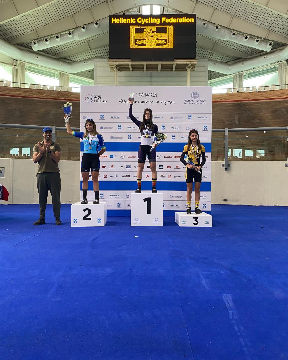 Παράλληλα συγχαίρει τις αθλήτριες ποδηλασίας της ΑΕΚ Τρίπολης, Χριστίνα Κυριαζάκου και Νίκη Φριντζίλα, για την κατάκτηση του αργυρού και χάλκινου μεταλλίου αντίστοιχα στην κατηγορία κορασίδων στο αγώνισμα του Όμνιουμ στο Πανελλήνιο πρωτάθλημα Πίστας.