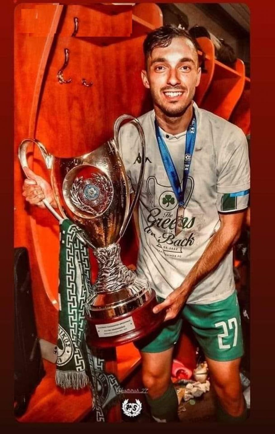 Θερμά συγχαρητήρια για τη μεγάλη εμφάνιση σου στον τελικό του Κυπέλλου Ελλάδος όπου βγήκες νικητής με την ομάδα του Παναθηναϊκού, αλλά και για τη φετινή πορεία σου σε Πρωτάθλημα και Κύπελλο.