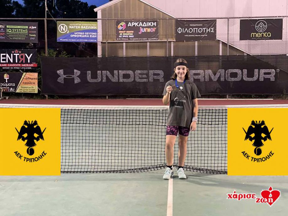 Συνεχίζοντας την πολύ καλή φετινή του πορεία ο όμιλος τένις της ΑΕΚ Τρίπολης κατέκτησε μια ακόμα θέση σε ένα ακόμα τουρνουά στην περιφέρεια Πελοποννήσου. Η αθλήτρια μας Παπαγιαννοπούλου Αγγελίνα κατέκτησε την 3η θέση στο πρόσφατο τουρνουά που διοργάνωσε ο ΣΑ Τρίπολης στις εγκαταστάσεις του στην Τεγέα.