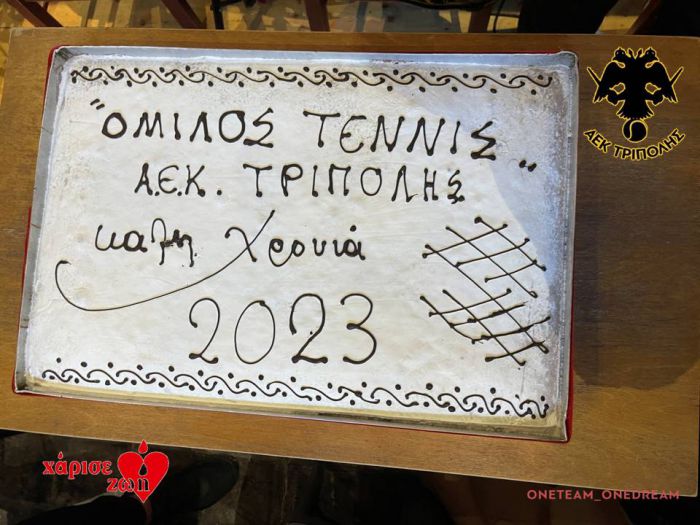 Σε ζεστή, εορταστική, ατμόσφαιρα έγινε η καθιερωμένη κοπή της πρωτοχρονιάτικης πίτας του ομίλου τένις της ΑΕΚ Τρίπολης μετά από μια παύση τριών ετών, εξαιτίας της πανδημίας.