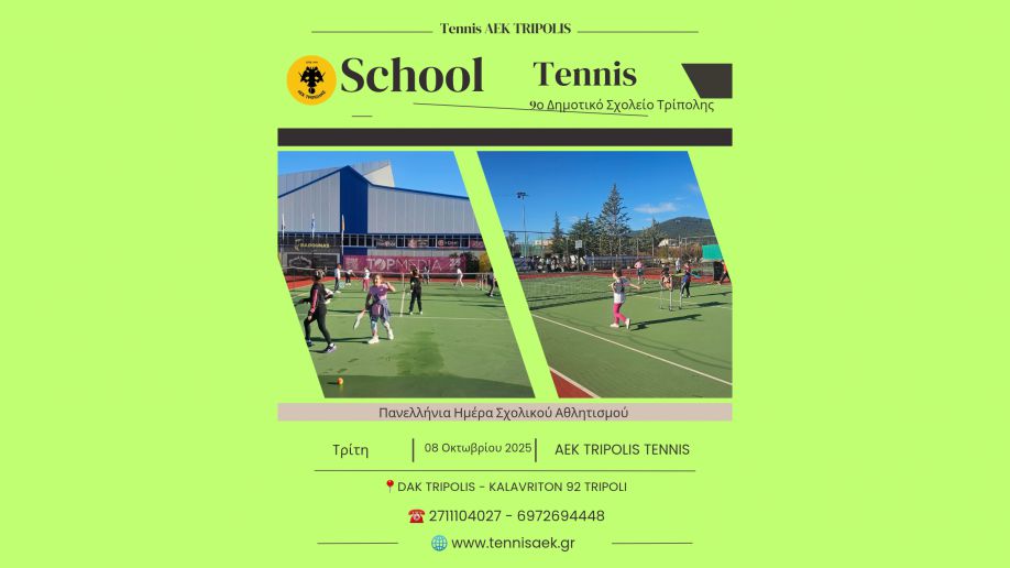 Ο Όμιλος Τένις της ΑΕΚ Τρίπολης στηρίζει ενεργά την προσπάθεια διάδοσης του αθλητικού πνεύματος στα σχολεία και συνεχίζει δυναμικά τις δράσεις του, καθώς η Πανελλήνια Ημέρα Σχολικού Αθλητισμού για εμάς δεν διαρκεί μία μέρα, αλλά… πολλές!