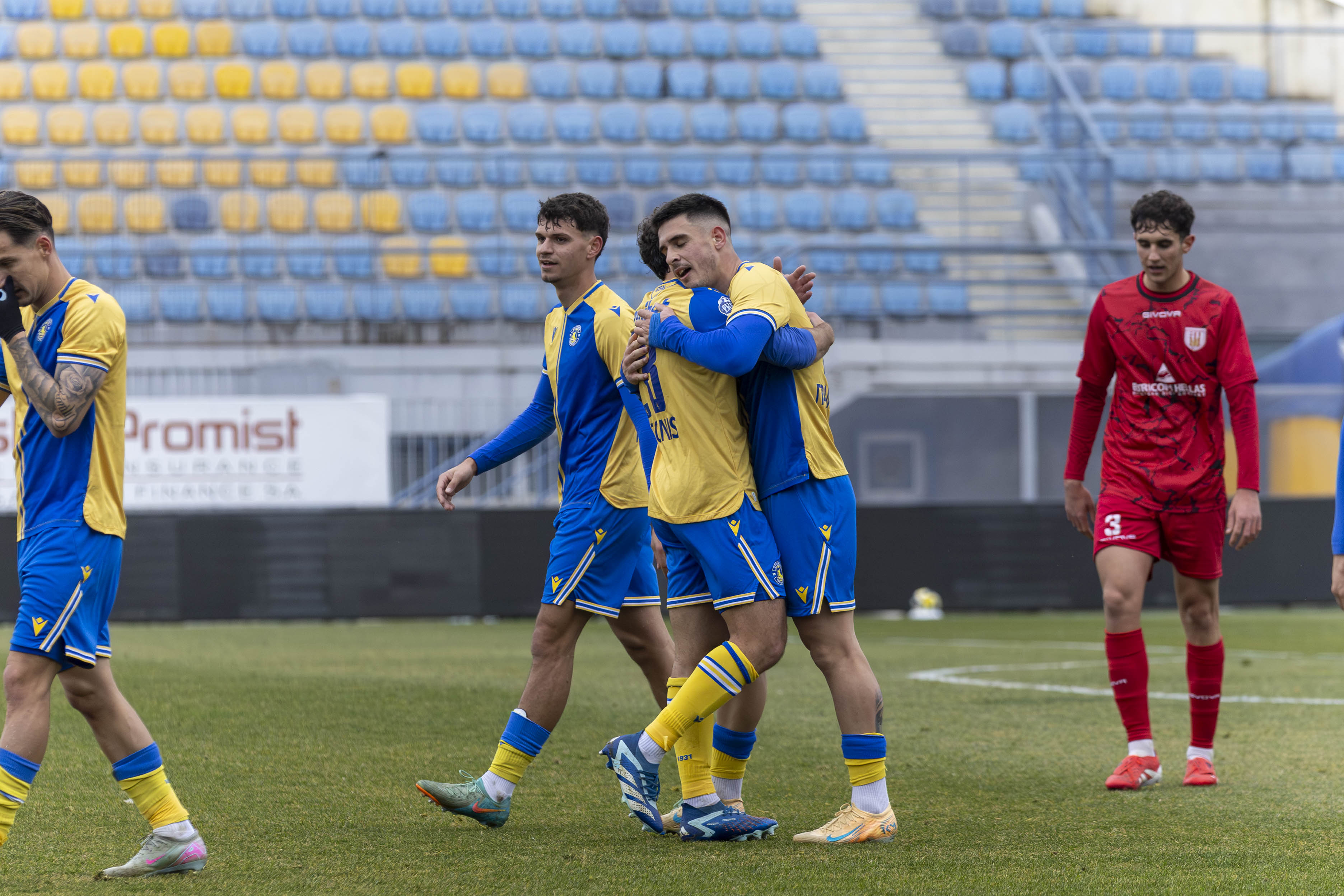 Η ομάδα μας σκόραρε στο 21' με εύστοχη εκτέλεση πέναλτι του Σιμόνι και στις καθυστερήσεις του πρώτου ημιχρόνου πέτυχε το 2-0 με τον Γραμμένο.