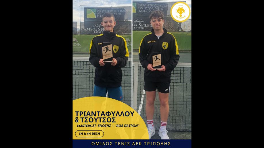 Τένις | 3η & 4η θέση για Τριανταφύλλου και Τσούτσο της ΑΕΚ Τρίπολης στα Masters της Στ΄ Ένωσης Αντισφαίρισης Πελοποννήσου (Α12)