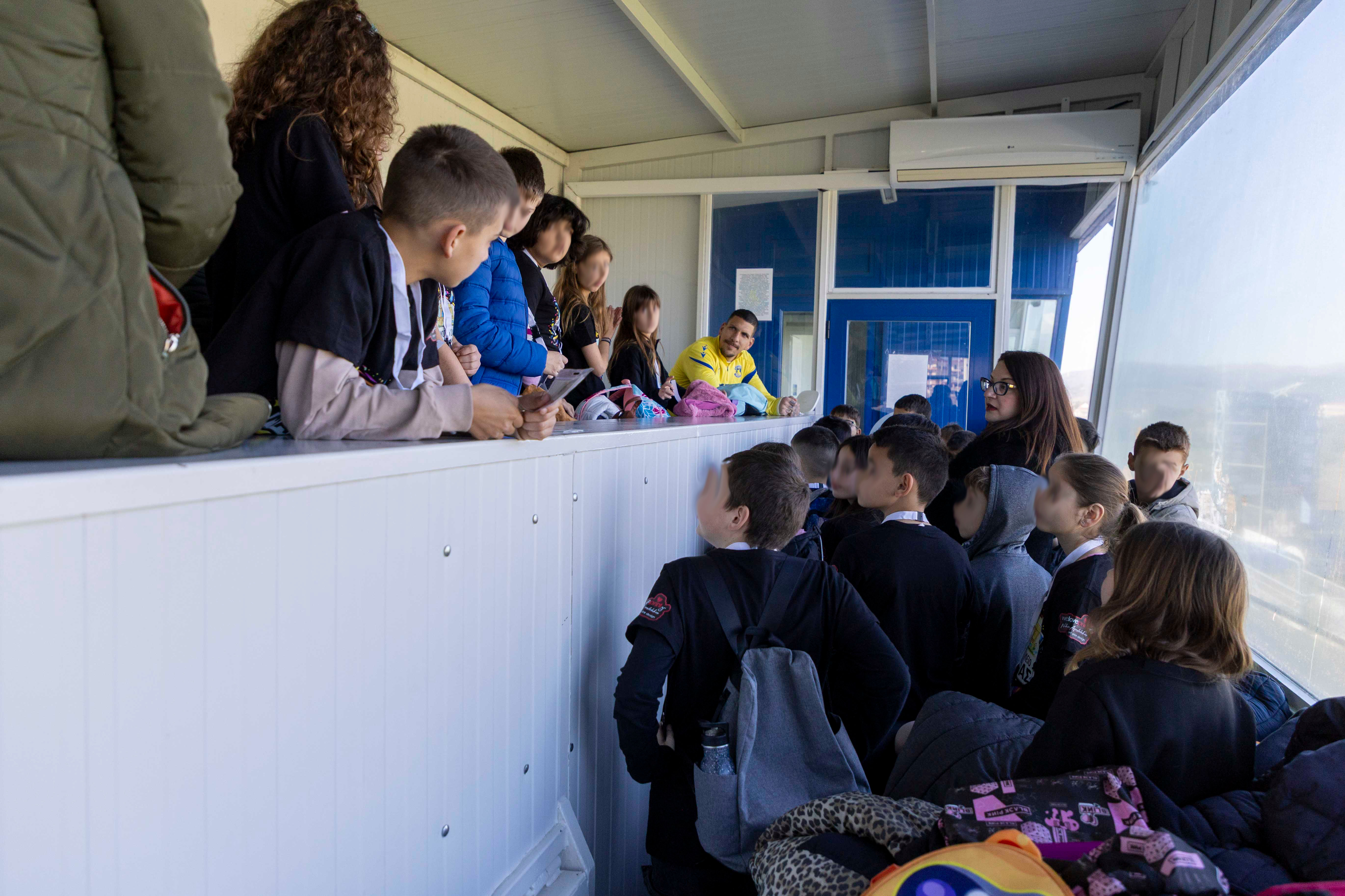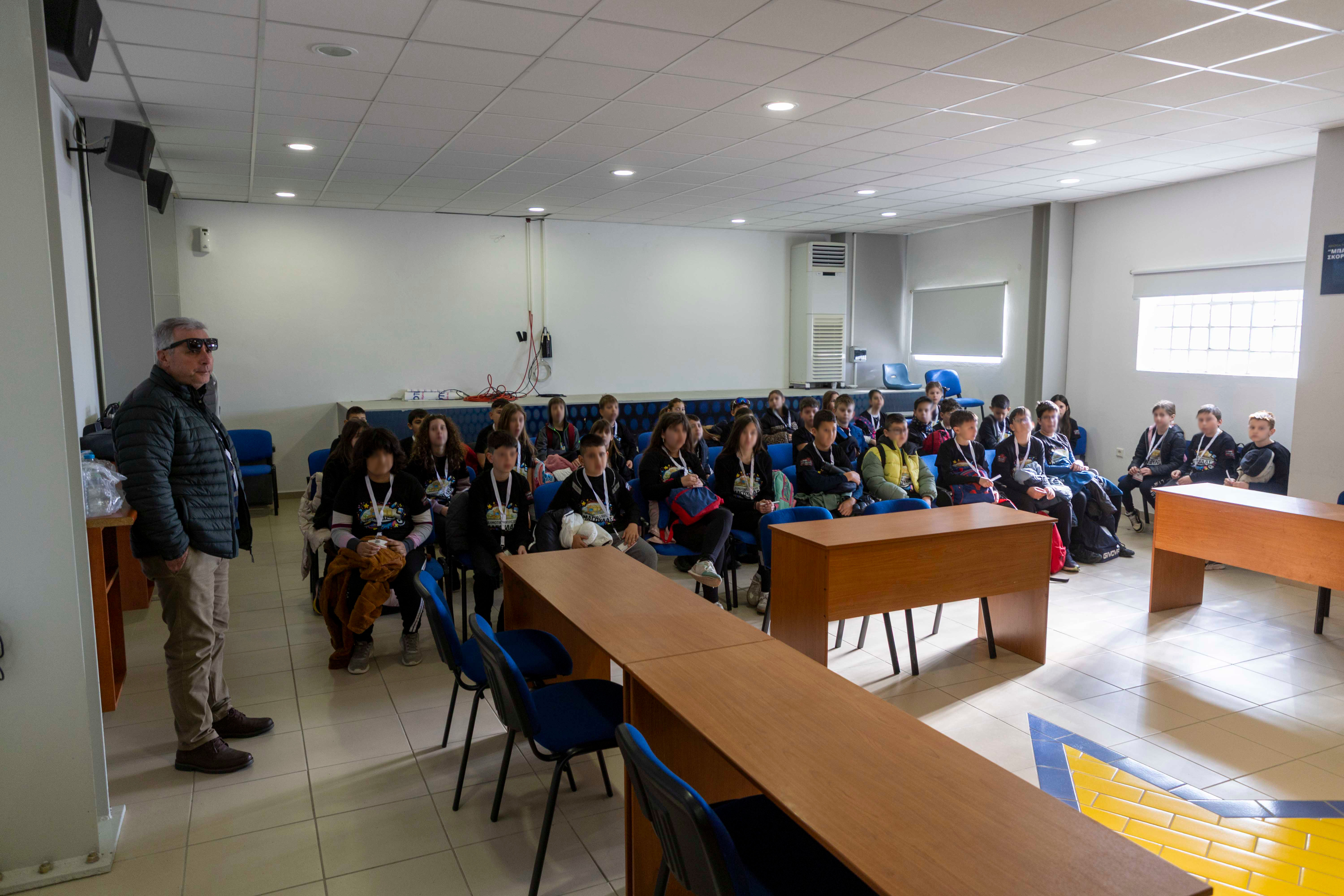 Οι μαθητές του σχολείου ξεναγήθηκαν στις εγκαταστάσεις, έπαιξαν ποδόσφαιρο, γέμισαν με κιτρινομπλέ αναμνήσεις και πήραν συνέντευξη από τον ποδοσφαιριστή της ομάδας μας, Κώστα Τριανταφυλλόπουλο, καθώς και τον βοηθό προπονητή της Β' Ομάδας, κ. Βαγγέλη Ντίσιο.