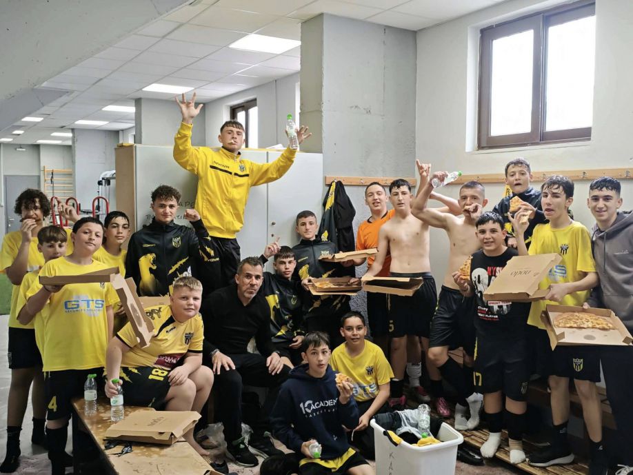 Η διοίκηση μετά το τέλος του παιχνιδιού προσέφερε πίτσα στους νεαρούς αθλητές.