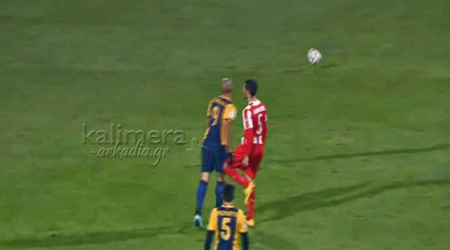 Όμως, εντελώς … συμπτωματικά ούτε ο Σπάθας, ούτε οι βοηθοί είδαν την κίνηση του χαφ του ολυμπιακού και έτσι γλίτωσε την κόκκινη κάρτα…