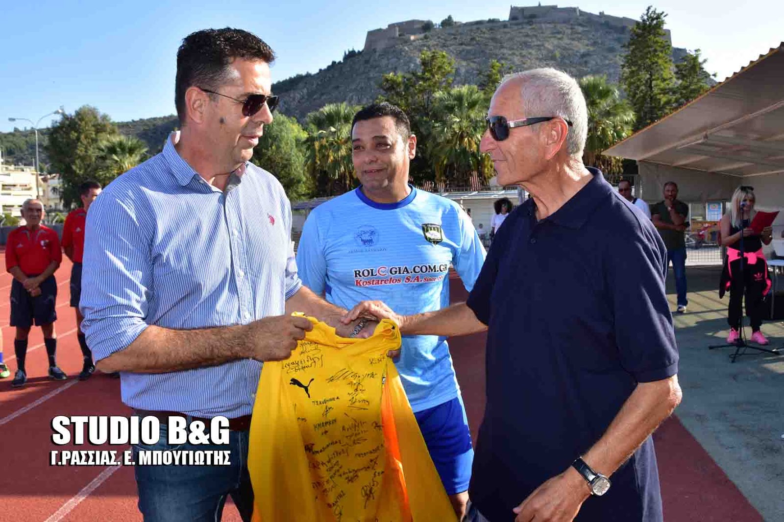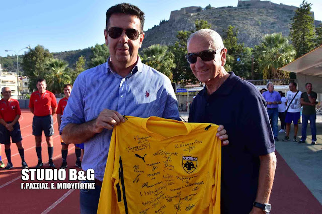 Επίσης αναμνηστική φανέλα της ΑΕΚ με τις υπογραφές των παλαιμάχων δόθηκε ως τιμητικό δώρο στον Δήμαρχο Ναυπλιέων κ Κωστούρο.