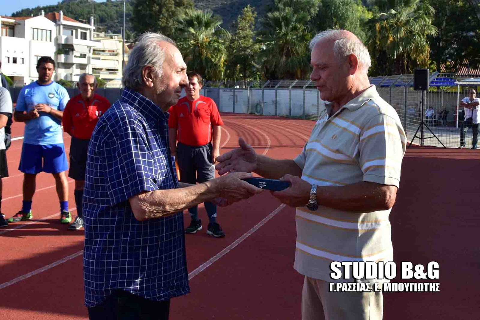 Να σημειωθεί, ότι πριν τον αγώνα, εγινε απονομή τιμητικών πλακετών. Μεταξύ άλλων, η ομάδα της ΑΕΚ πρόσφερε τιμητική πλακέτα σε δύο κατοίκους του Ναυπλίου, που αγωνίστηκαν παλιότερα με τα χρώματά της, επί εποχής Στάνκοβιτς, στον Κωνσταντίνο Σαρρή, που τιμηθηκε μετά θάνατον και την πλακέτα παρελάβαν συγγενείς του. Ο αείμνηστος Σαρρής την περίοδο 1969-70 είχε οκτώ συμμέτοχες στο Πρωτάθλημα, με την ΑΕΚ. Τιμηθηκε επίσης και ο Θωμάς Γερμανάκος, που είχε ξεκινήσει την καριέρα του από την εφηβική ομάδα της.