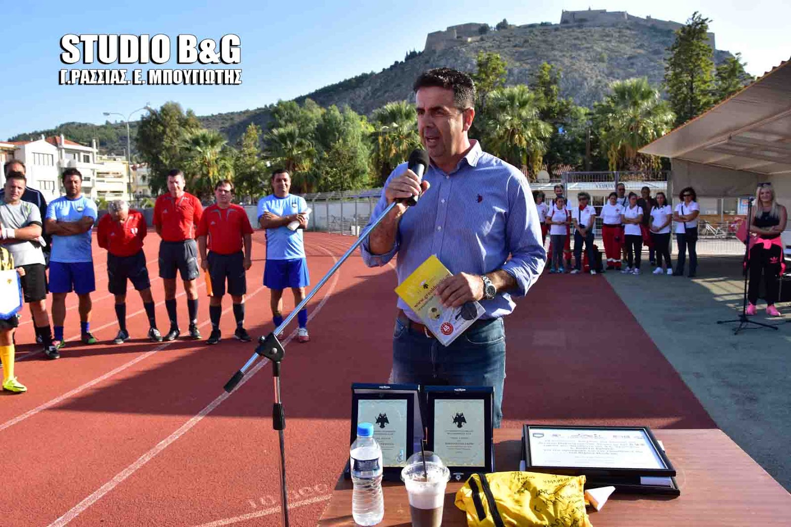 Και συνέχισε: "Αντί εισιτηρίου οι θεατές έφεραν στο Στάδιο νερομπογιές - τετράδια - πινέλα ζωγραφικής - μπλοκ ζωγραφικής - είδη ζωγραφικής - μολύβια - μαρκαδόρους- φάκελους με λάστιχο - συρραπτικά - γόμες - ξυλοκόπαγες - ξύστρες - κόλλες σε υγρή μορφή - καλαθάκια σκουπιδιών - φυτά και χώμα τύρφη. Είναι μερικά από τα είδη που έχουν πολύ ανάγκη τα παιδιά των παραπάνω σχολείων και χαρά μας, εάν καταφέρουν με τη δική μας αρωγή να τα αποκτήσουν. Και με την ευκαιρία, ως εκπρόσωπος της ομάδας ποδοσφαίρου Celebrities Ναυπλίου, να ευχαριστήσουμε ως ομάδα ιδιαίτερα για την βοήθεια και την ευαισθησία για τα παιδιά, τον Διευθυντή κ. Γαληνό και τους συνεργάτες του"