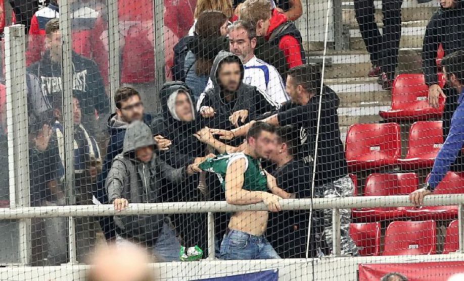 Ένας οπαδός εμφανίστηκε με φανέλα του Παναθηναϊκού στο πέταλο και δεν πέρασε απαρατήρητος από τους οπαδούς που βρισκόντουσαν στη συγκεκριμένη θύρα, όπου μερικοί απ΄ αυτούς είχαν και διακριτικά του Ολυμπιακού.