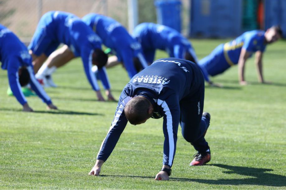 Σήμερα το πρόγραμμα της προπόνησης του Αστέρα ήταν σε πολύ μεγάλη ένταση και υψηλούς ρυθμούς.