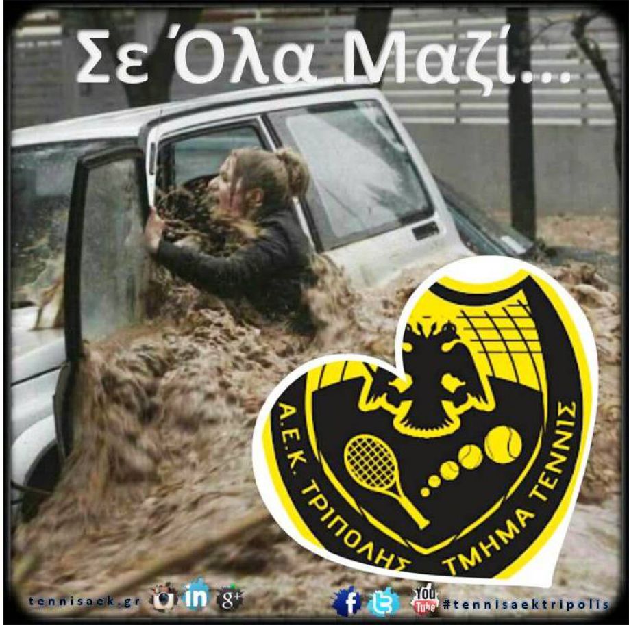 Ο όμιλος τένις της ΑΕΚ Τρίπολης ανακοινώνει προς όλα τα μέλη του αλλά και όσους θέλουν να βοηθήσουν τους συνανθρώπους μας στην Μάνδρα Αττικής, ότι από Δεύτερα 20/11, μαζεύονται ήδη πρώτης ανάγκης στα γραφεία του συλλόγου.