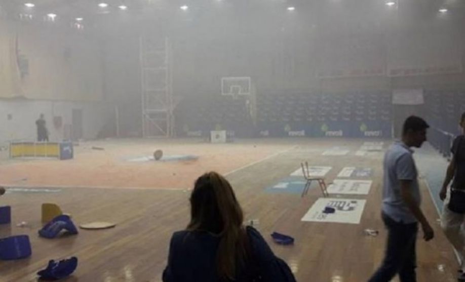 Μάλιστα, πέταξαν στο παρκέ κροτίδες, μπουκάλια, φωτοβολίδες και καπνογόνα, ενώ χρησιμοποίησαν μέχρι και τους πυροσβεστήρες.