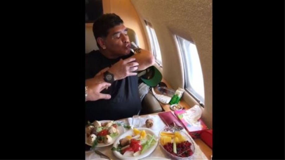 Εκτός από τις εξέδρες, ο Μαραντόνα κάνει... τρέλες και στα τζετ που τον μεταφέρουν από πόλη σε πόλη στη Ρωσία για να παρακολουθεί τα ματς της Αργεντινής.