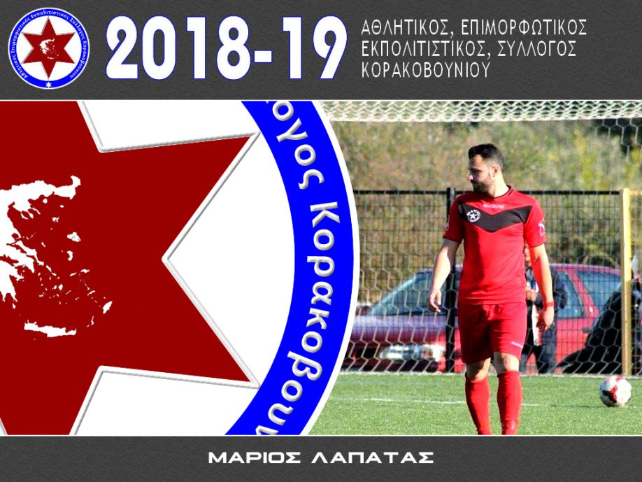 Ο Α.Ε.Ε.Σ Κορακοβουνίου ανακοινώνει την ανανέωση της συνεργασίας του για την επόμενη αγωνιστική περίοδο με το ποδοσφαιριστή Μάριο Λαπατά.