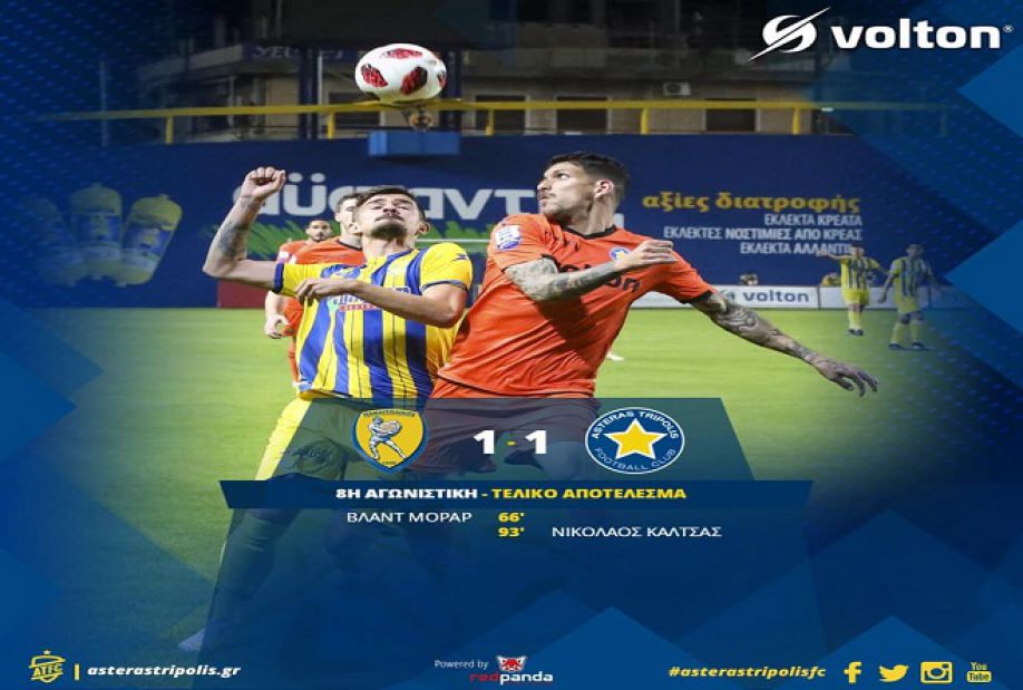 Με γκολ του Καλτσά στις καθυστερήσεις (93ο λεπτό) ο Αστέρας έφυγε με την ισοπαλία από το Αγρίνιο.