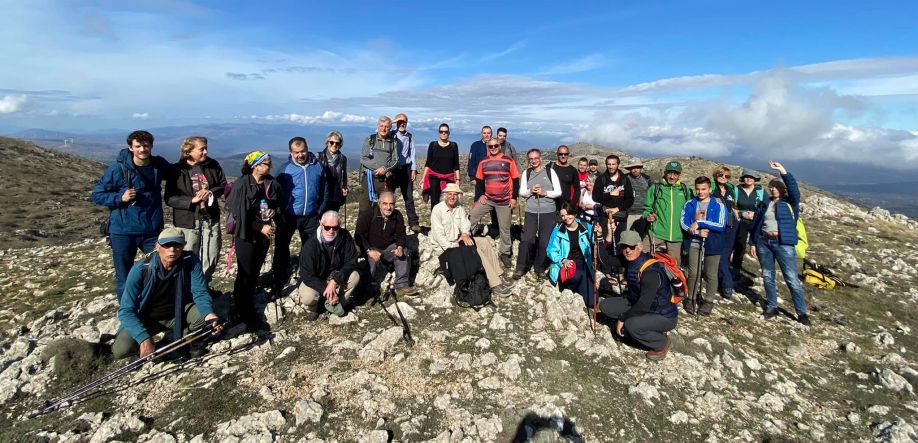 Σαράντα ορειβάτες ξεκινήσαμε από την αναμνηστική στήλη της μάχης της 18ης Μαΐου 1821 και περιπλανηθήκαμε στα δρομάκια του πανέμορφου και πεντακάθαρου χωριού. Στη διαδρομή θαυμάσαμε τα επιβλητικά πυργόσπιτα που χρησιμοποιήθηκαν ως οχυρωματικές θέσεις κατά την προαναφερθείσα νικηφόρα για τους αγωνιστές μάχη. Η περιήγηση στο χωριό τελείωσε στον Ι. Ν. του Αγίου Προδρόμου και από κει ανηφορήσαμε με κατεύθυνση βορειο-ανατολική και μετά από μια απαραίτητη στάση ξεκούρασης, προσεγγίσαμε ένα αιολικό «πάρκο». Από κει, η επόμενη στάση μας ήταν στην κορφή με το εξωκκλήσι του Προφήτη Ηλία.