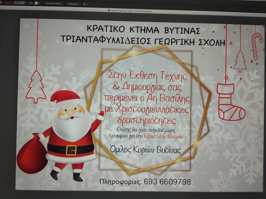 Η 8η “Έκθεση Τέχνης και Δημιουργίας” ετοιμάζεται και θα πραγματοποιηθεί φέτος από 23 Δεκεμβρίου 2021 έως 2 Ιανουαρίου 2022 στην Τριανταφυλλίδειο Σχολή στο Κρατικό Κτήμα Βυτίνας.