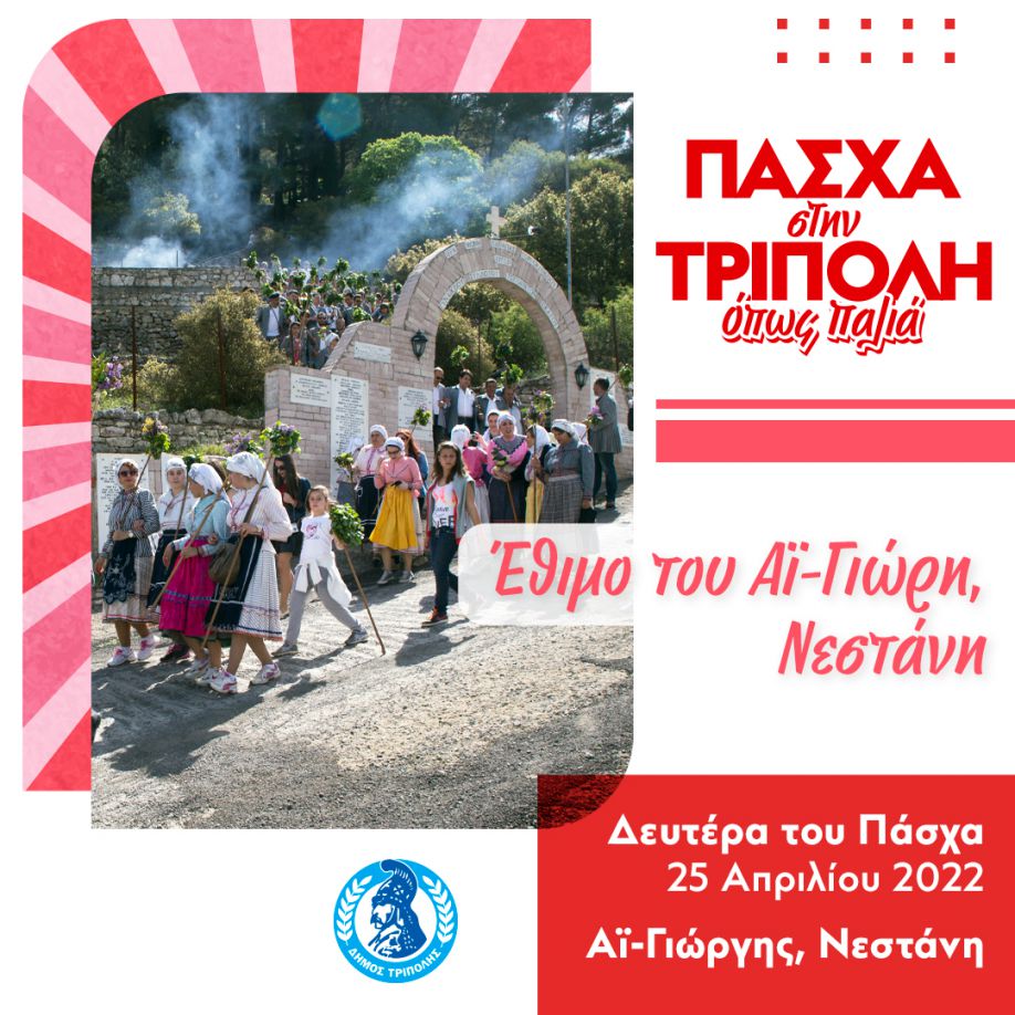 Στο πλαίσιο των Πασχαλινών εκδηλώσεων του Δήμου Τρίπολης, την Δευτέρα του Πάσχα (25/4/2022), αναβιώνει το έθιμο του Α¨-Γιώρη στη Νεστάνη.