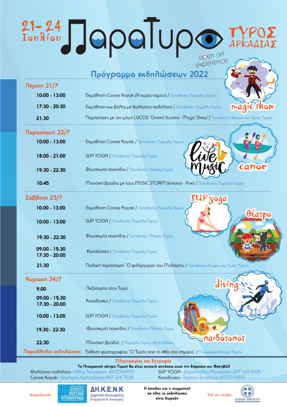 Στον Τυρό Αρκαδίας 21με 24 Ιουλίου επανέρχεται μετά από απουσία 2 χρόνων το φεστιβάλ Παρατυρό, με δράσεις για μικρούς και μεγάλους.